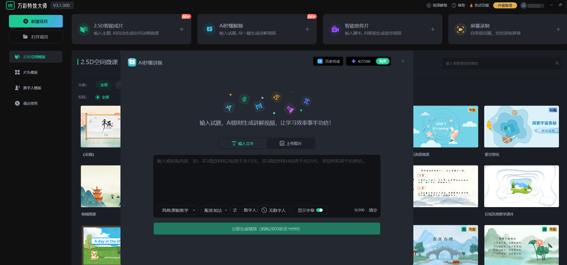 2、【NEW】Ai秒懂講題:輸入試題,AI即刻生成講解視頻,搭配數字人生動講解,,讓知識點更容易理解,讓學習效率事半功倍!