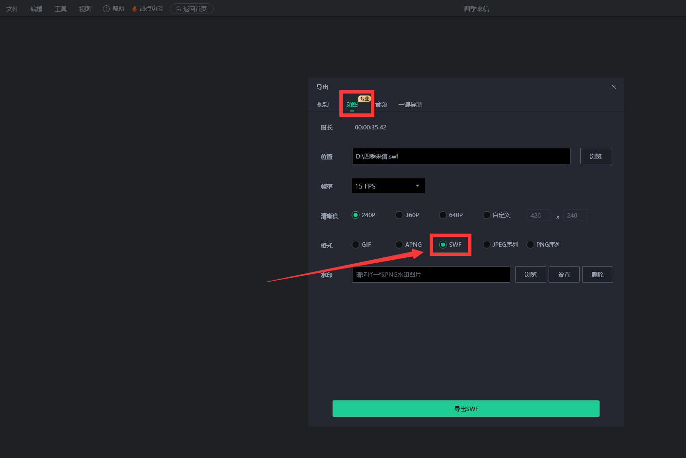 3、導出:動圖新增支持 SWF 格式導出,協助力打造更酷炫課件